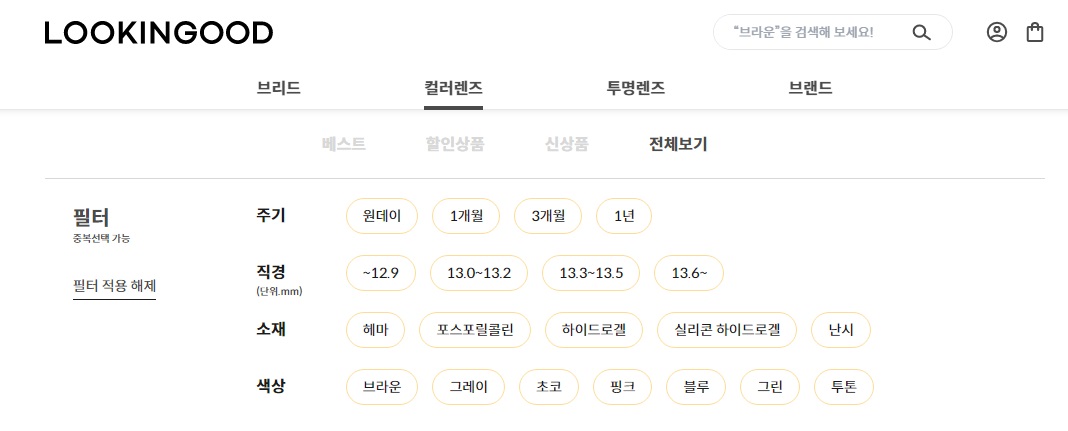 컬러렌즈 검색 필터가 잘되어 있어서