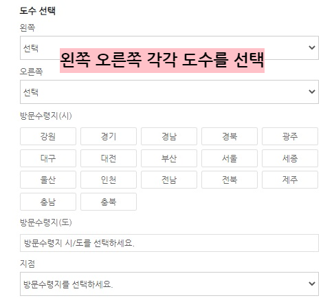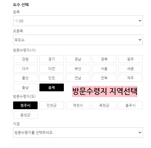 렌즈도수를 왼쪽 오른쪽 눈 각각 선택해야해요